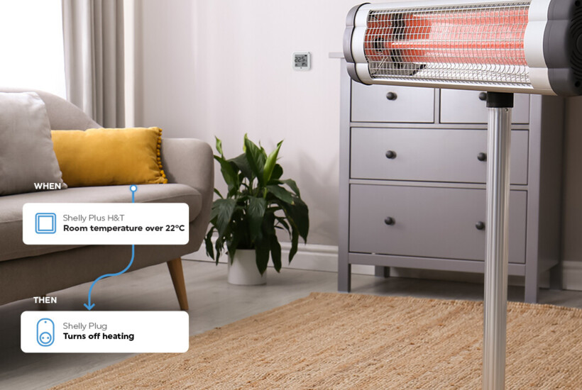 Controlling the temperature at home has never been easier! There is no need to invest in expensive smart appliances. If you have an old space heater, don’t let go of it just yet! Instead, make it smart by simply plugging it into Shelly Plug! Then, create a scene with Shelly Plus H&T and have the heater turn on once the sensor detects a drop in temperature levels. And the cherry on top? You’ll always know how much energy you’re consuming!